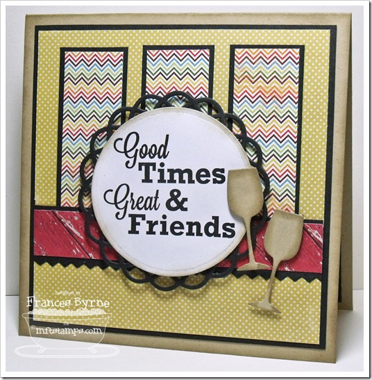 I love your card! I love the panels, the paper and this stamp set and dies. Those little wine glasses are so adorable and usable for a variety of occasions! What a great card and a fun intro to this set! :)
