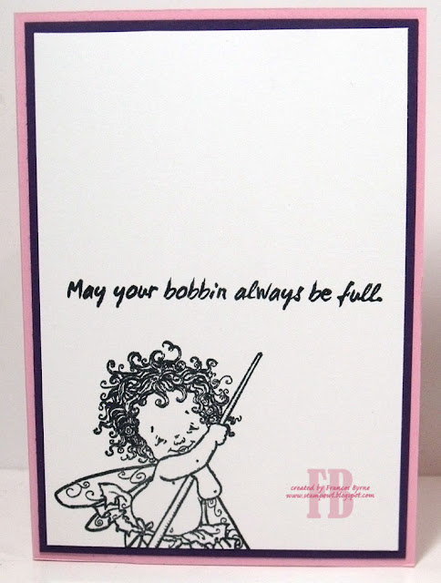 Today I am sharing a card I created using the cute fairies from a Penny Black stamp set that has a sewing/quilting theme. I know a couple of people who love sewing/quilting so this was a stamp set that had to make it's way into my collection :).