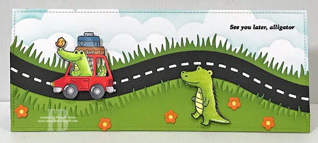 To decorate my card, I used the alligator driving the card from Craftin' Desert Divas and also one from Hello Bluebird.