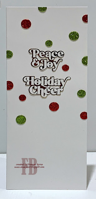 I added the "Merry & Bright" sentiment which uses Pinkfresh Studio's Perfect Sentiments Holiday & Solid Glimmer Hot Foil Plates.