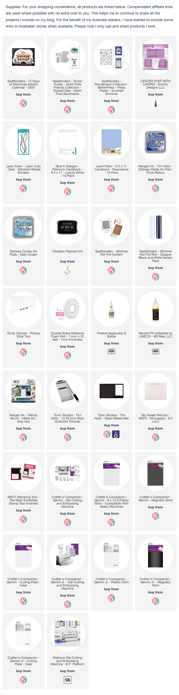 I used the Snowflake Shimmer Betterpress plate to create the snowy background. This was white foiled onto blue cardstock and then I added darker inks to the top portion of the panels.
