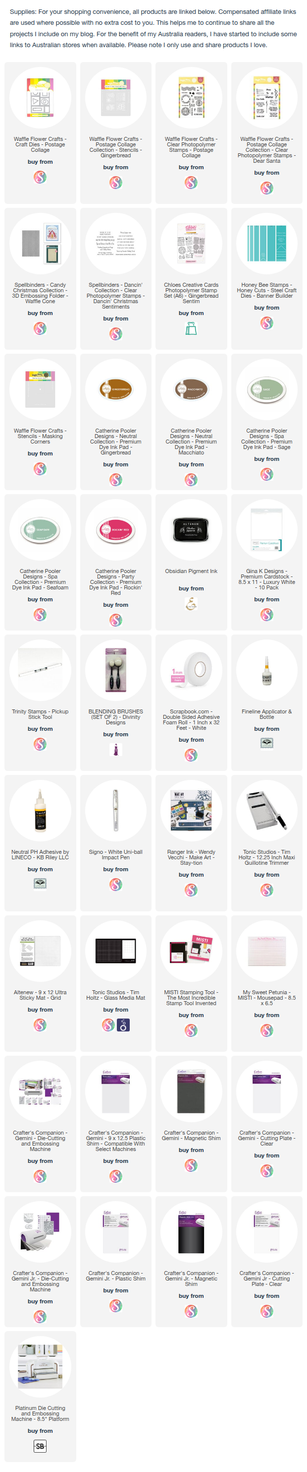 The Gingerbread Postage design was created using Waffle Flower Crafts Gingerbread Postage Collage Stencil and the coordinating Postage Collage die sets. The stencil is one I.got last year, but ran out of time to use it then, so it has been one I wanted to use this year. I also added a combination of postage stamps to the finished design from both Waffle Flower Crafts & Made To Surprise.