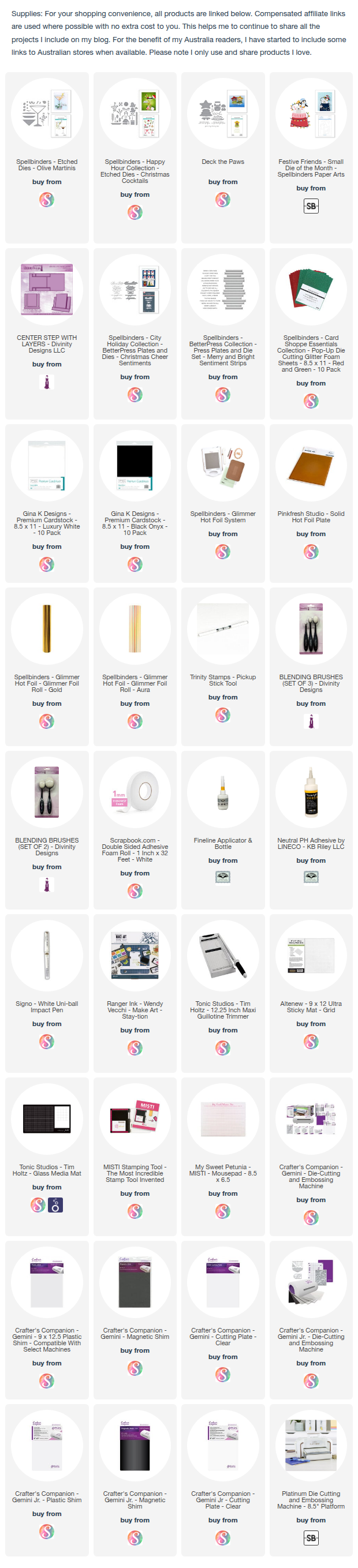 Both cards are Centre Step cards, and both share a lot in common including the colours and papers. Also in common are the Olive Martinis and Christmas Cocktails die sets from Spellbinders.